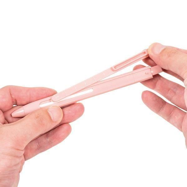 付属の定規はペンから取り外して使用できます。なめらかな書き味の水性インクを使用しています。