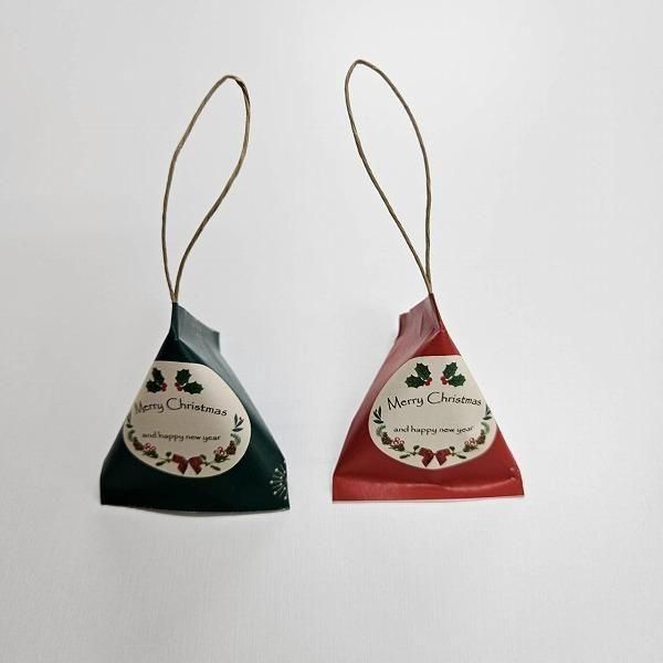 オーナメントをイメージしたテトラ型パッケージ。ツリーに飾ったり、イベントで配るのに最適です。
