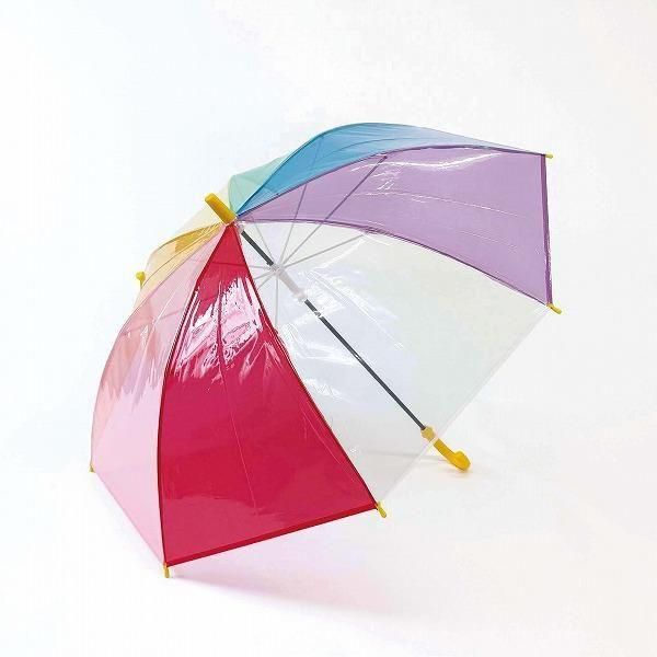 子供POE55cm耐風安全ろくろ傘 レインボー