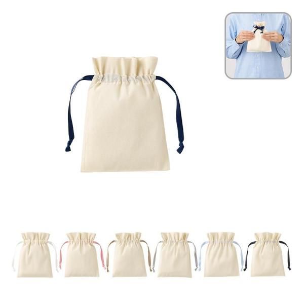 コットンカラーリボン巾着(S)ベージュ
